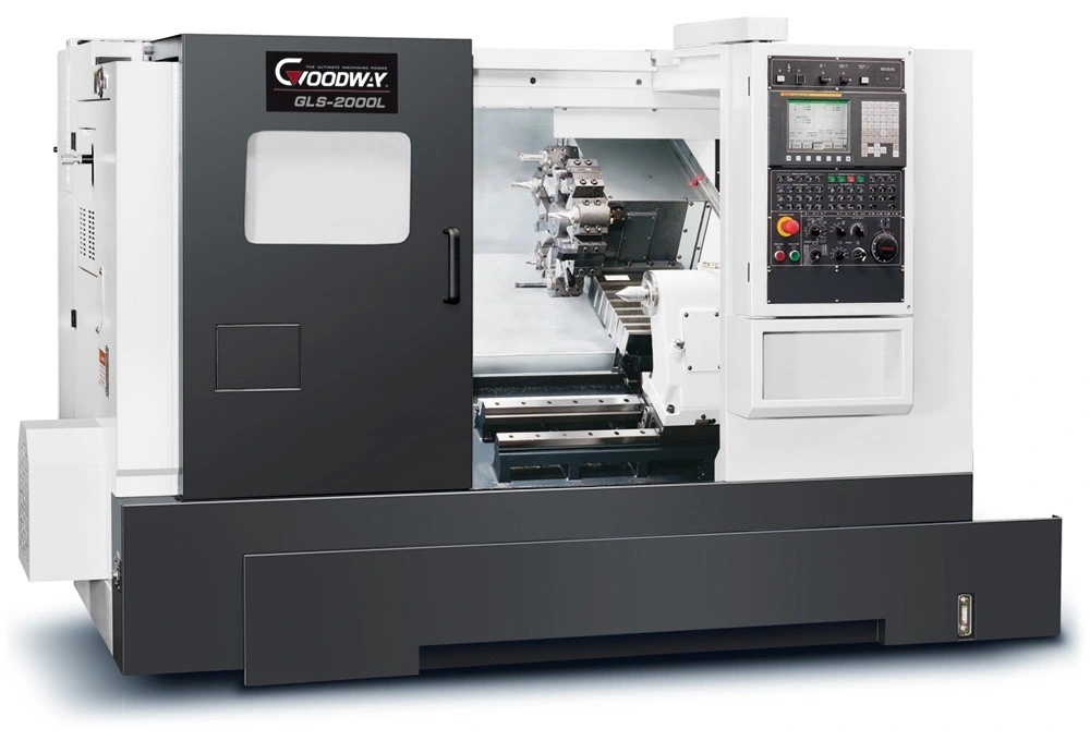 YAMA SEIKI GLS-2000LYS used multi-turret lathe, swing 22", machining length 12.9", 8" chuck, bar capacity 2", 15.0 power, max RPM 4200, turning diameter 16.9". Perfect for versatile, high-performance machining needs.