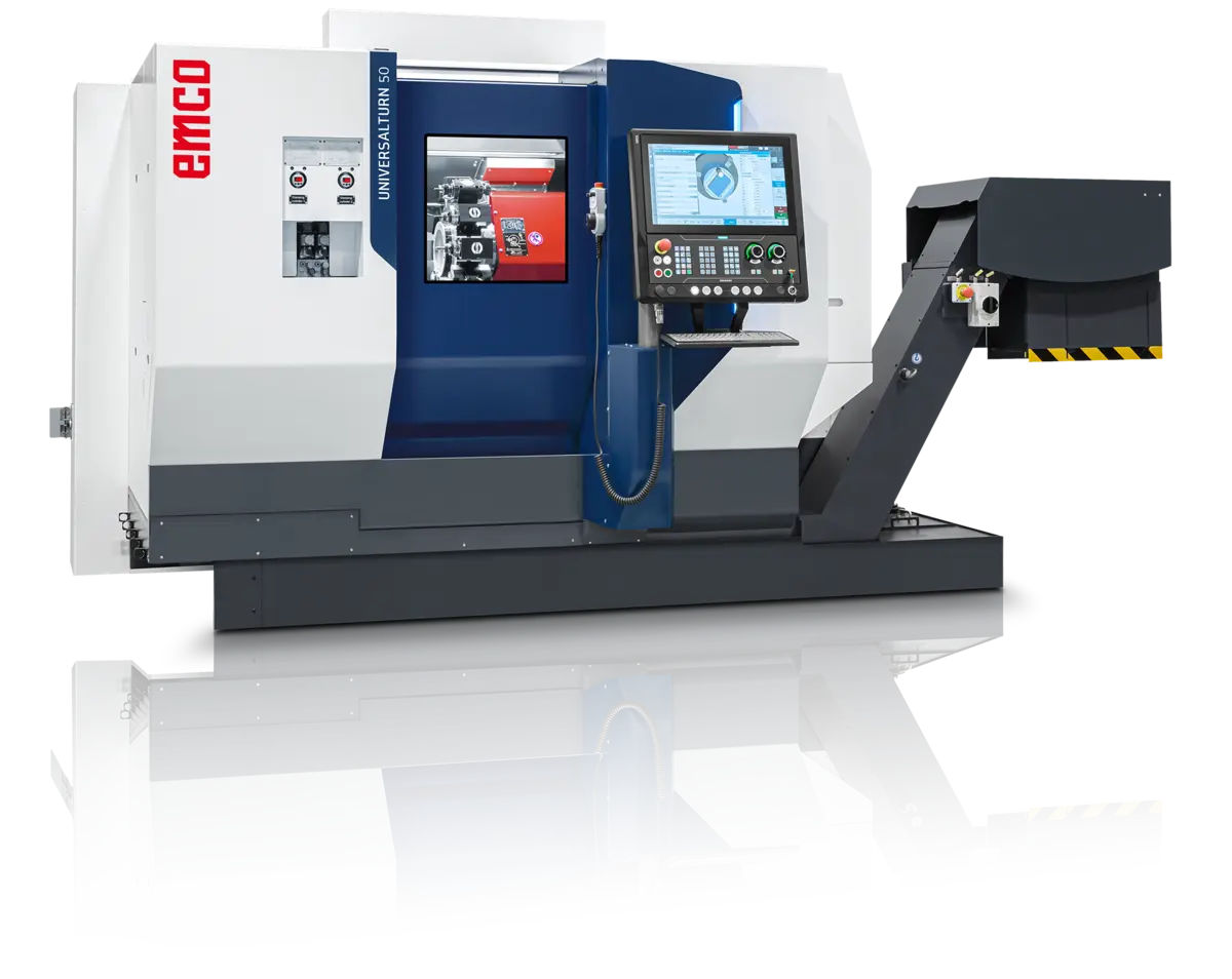 With the new UNIVERSALTURN 50, EMCO sets the next milestone in complete machining of bars and chuck parts. Developed for maximum precision, dynamics and process reliability, the compact high-performance turning center offers everything that modern manufacturing centers require: powerful drive